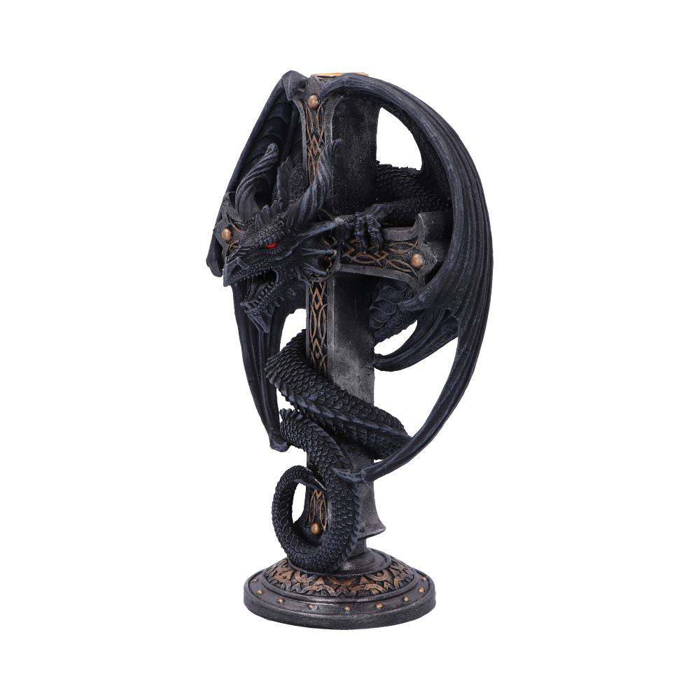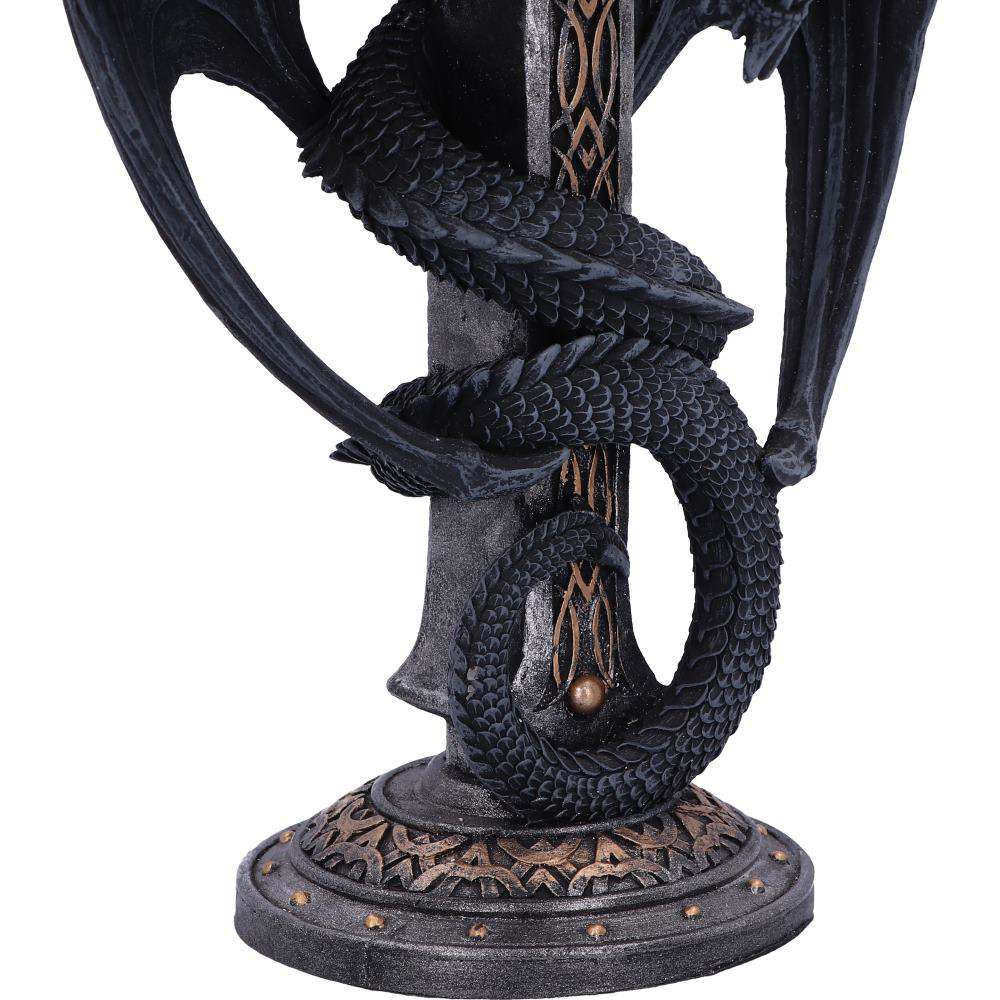 En Mörk Glöd Kandelaber är inte bara en ljushållare, utan också en fantastisk konversationsstartare, idealisk för den som älskar det gotiska och mystiska. Låt draken vakta ditt hem medan den sprider en lugn och behaglig belysning.