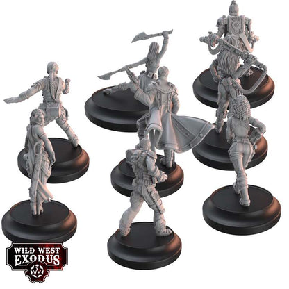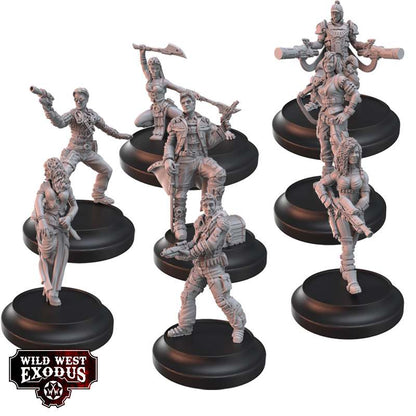 Miniatyrerna levereras omålade och viss montering kan krävas. Karaktärens enhetskort ingår inte, men de kan hittas på Wild West Exodus-webbplatsen. Ge dig ut på äventyr med Wayward Eight och upplev spänningen i Wild West Exodus!